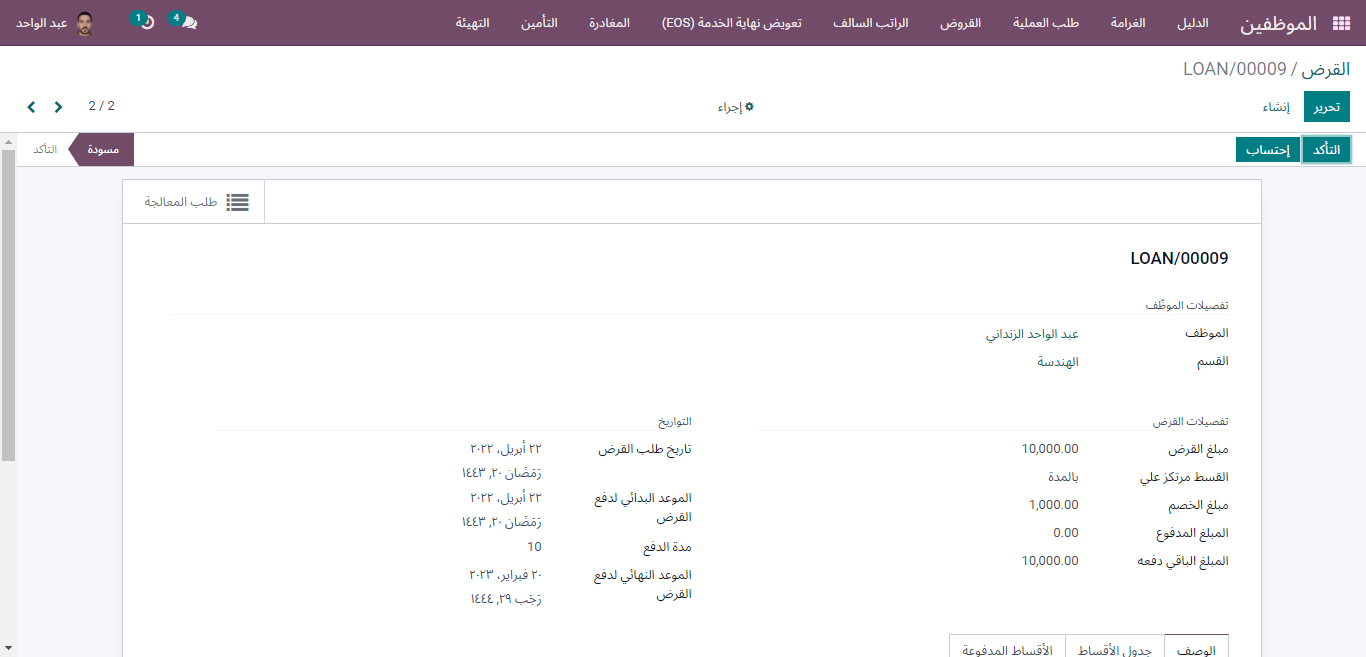 loan detail in employee