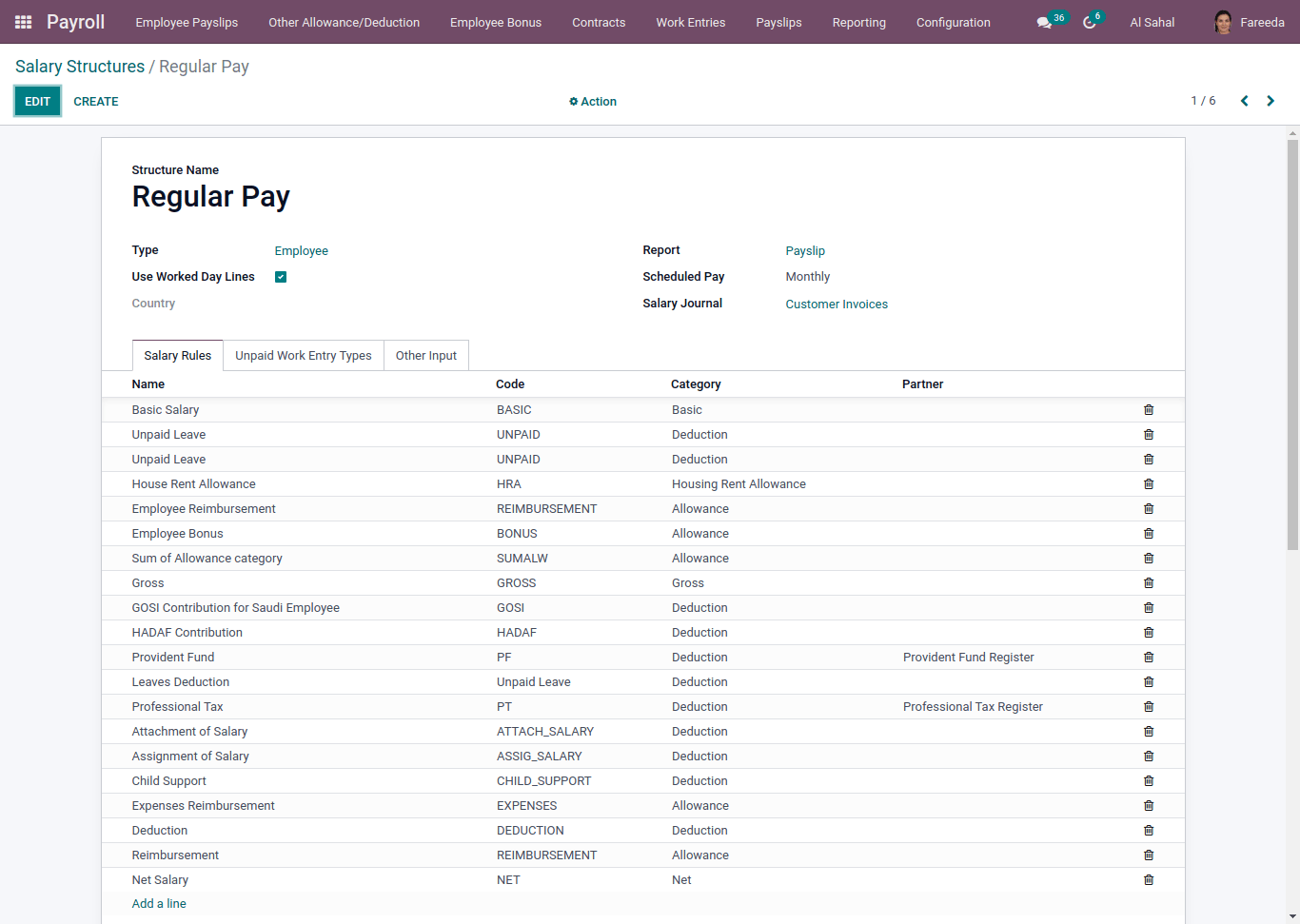 Watch out the functionality in Arabic Language that describes how salary rules are grouped in a salary structure and how the respected salary structure can be defined in employee's contract.
